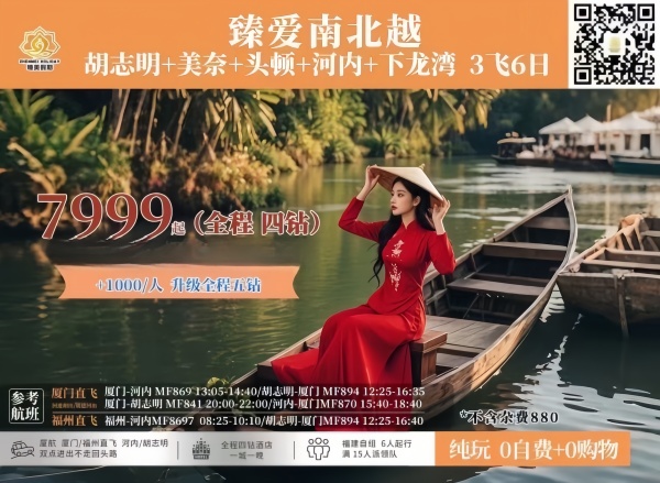 1、厦门-河内 下龙/海防/河内-胡志明 胡志明-厦门全程三飞机票及税(以实际出发日期申请航班及价格最终为准)