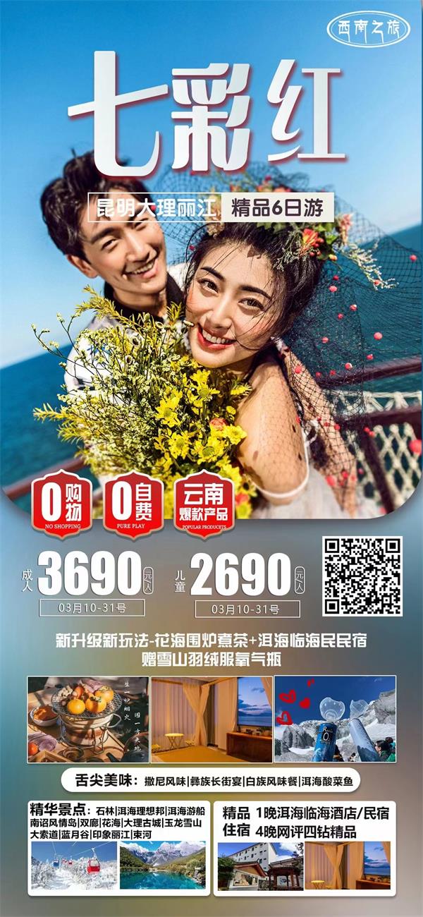七彩红(3月)>>一价全含|洱海临海客栈|围炉煮茶|洱海游船|爱情圣地双廊|昆明大理丽江2飞单动6日纯玩