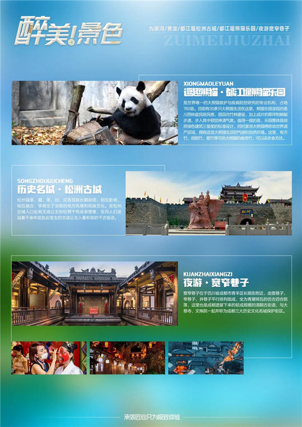 NO8:五大知名景点一网打尽-【九寨沟】【黄龙】【都江堰】【松洲古城】【都江堰熊猫乐园】