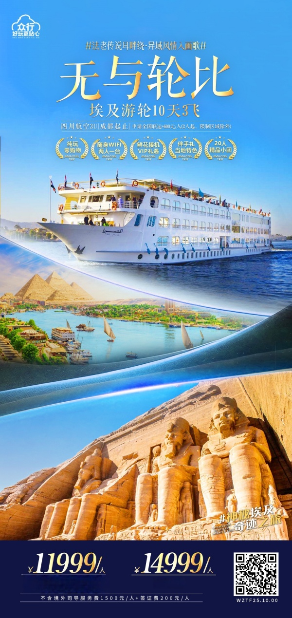 埃及落地签¥200/人。(请出发前结清) 全程单房差¥3300/人。
