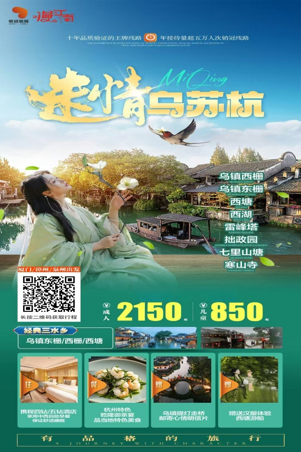 杭州14:00点左右接团,15:00点前发车,具体出发时间以导游通知的时间为准!车赴《似水年华》外景地、江南最秀美的水乡——乌镇;