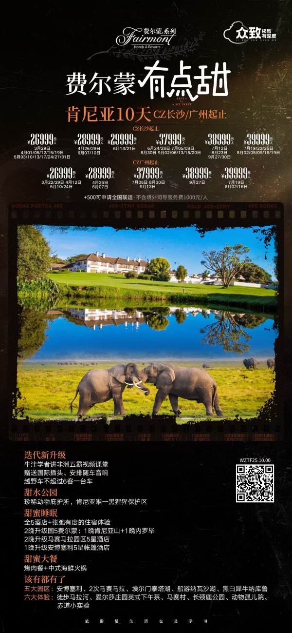 请各位贵宾出发当日下午于广州白云国际机场集合,乘坐南方航空前往内罗毕