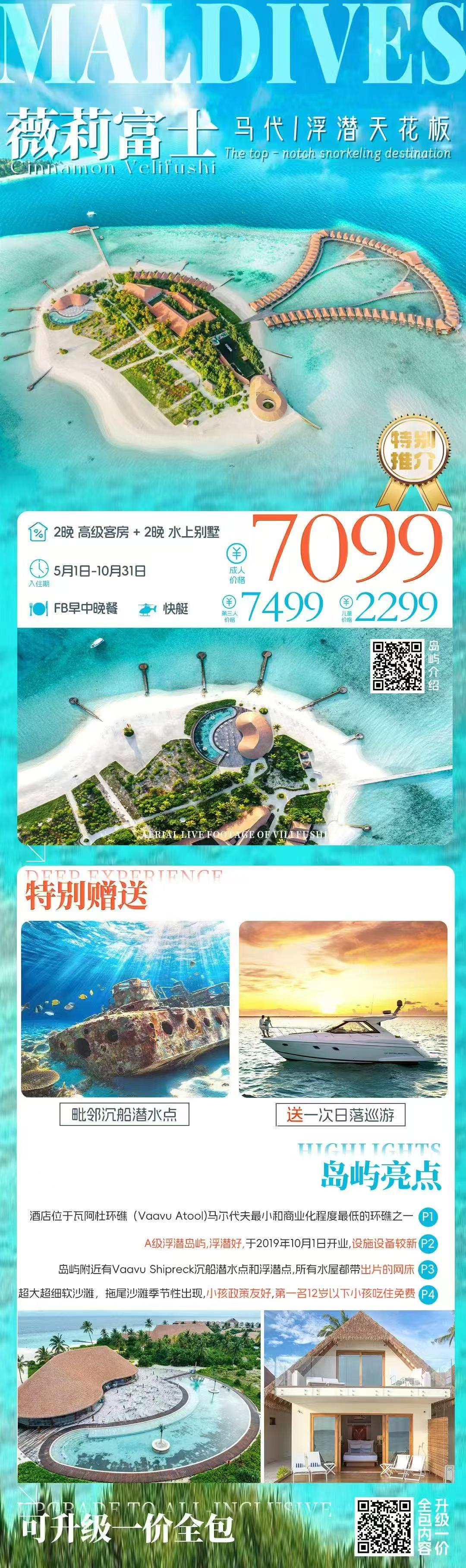 Velifushi岛,辛纳蒙马尔代夫薇莉富士酒店位于瓦阿杜环礁(Vaavu Atoll)内,距离马累67公里,可以通过25分钟的水上飞机或70分钟的快艇到达。瓦阿杜环礁体现了宁静和传统。它的许多小岛拥抱着更传统的马尔代夫生活方式,显然热爱钓鱼和音乐。瓦阿杜环礁是马尔代夫最小和商业化程度最低的环礁之一。海滩经常荒无人烟,潜水点空无一人-非常适合寻求私密体验的潜水者。瓦阿杜环礁也是许多著名潜水点的所在地“Fotteyo Kandu”被认为是马尔代夫最好的潜水点之一,也是马尔代夫最大的连续珊瑚礁。酒店周围的水域是无数海洋生物的家园,更是观赏护士鲨的绝佳场所。这些个性温顺的生物可以长到3米长,当他们只是悠闲地沿着珊瑚礁滑行时,就足以形成令人印象深刻的景象