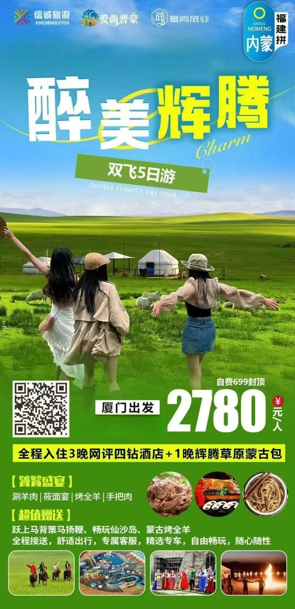 含厦门—呼和浩特往返经济舱机票、机建、燃油税等;机票一经开出,不得退票、不得签转、不得更改