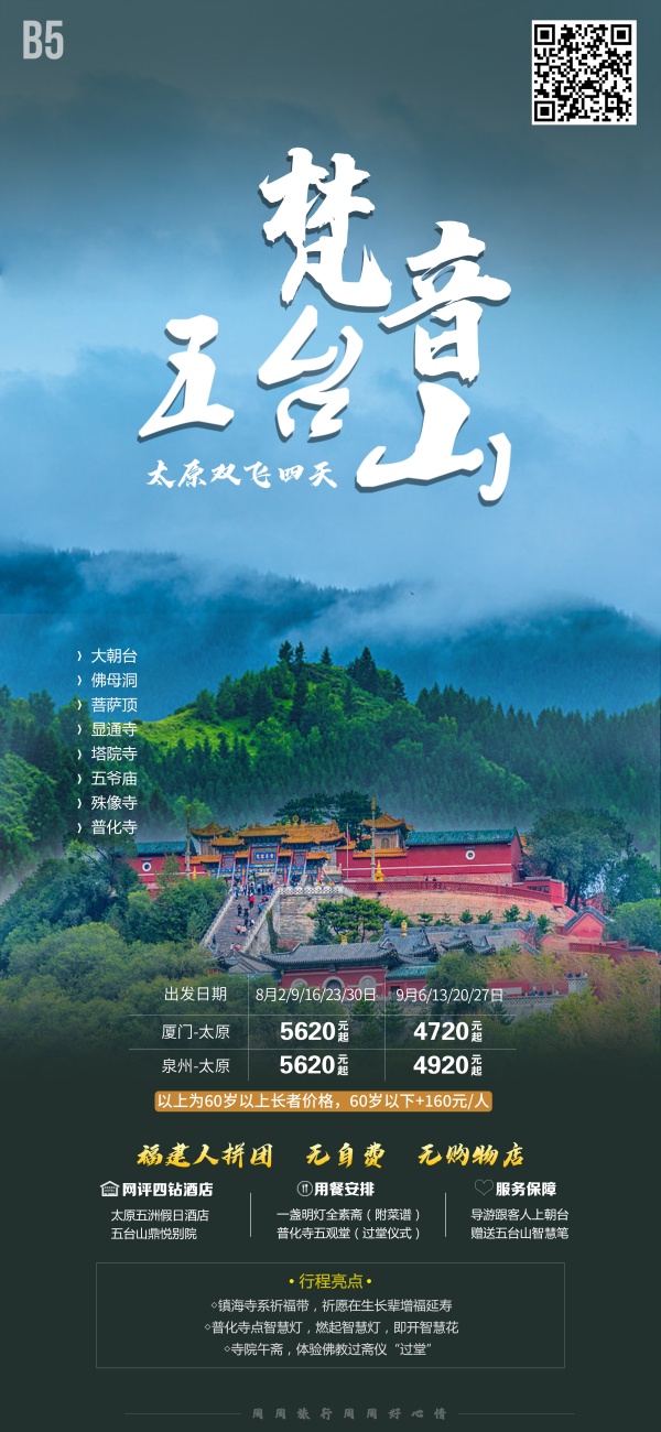 4.备选酒店:五台山禅心殊院酒店。如房满安排其他同级别酒店。