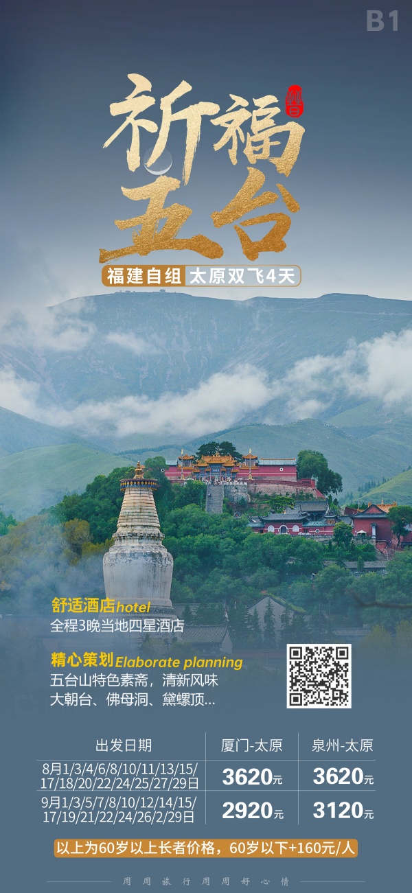 【北台叶斗峰】(车程1.5小时),无垢文殊保佑您全家消灾免难。