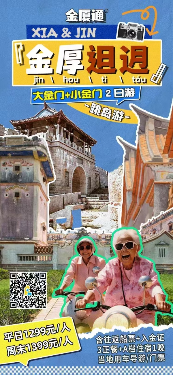 2.金门 A 档酒店/民宿,两人一室,一晚住宿;如产生自然单间需另补房差。